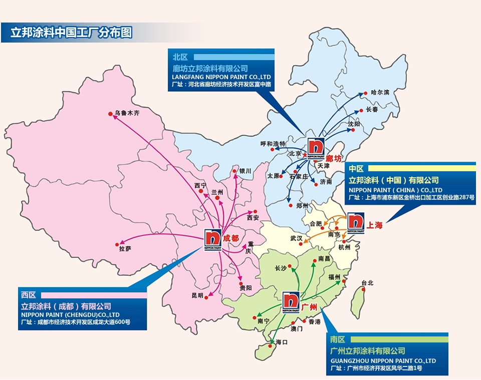 据透露,立邦中国加快产能扩张步伐,也是为了满足中国地区日益增长的市场需求。从2014年来看,立邦中国除了2014年1月15日宣布以“资产收购”形式收购德家朗骆驼旗下的欧龙漆(OPEL)品牌及其产品、技术、渠道外,还在建新的涂料生产基地。