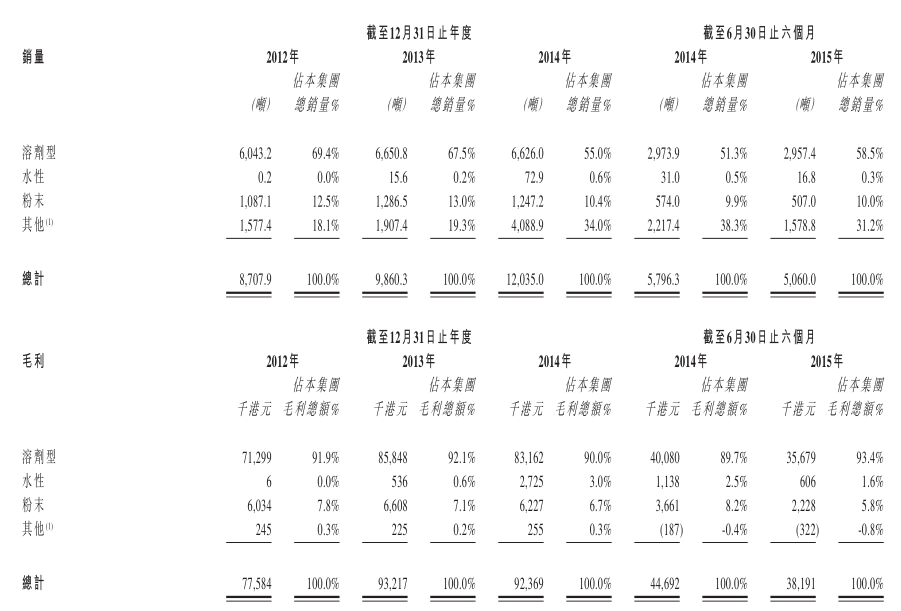 截至今年6月底止六个月,来自液态涂料的收益占总收益约78.8%,而粉末涂料则占约9.2%。液态涂料一般较受客户欢迎,主要由于应用上液态涂料的限制较粉末涂料为少。