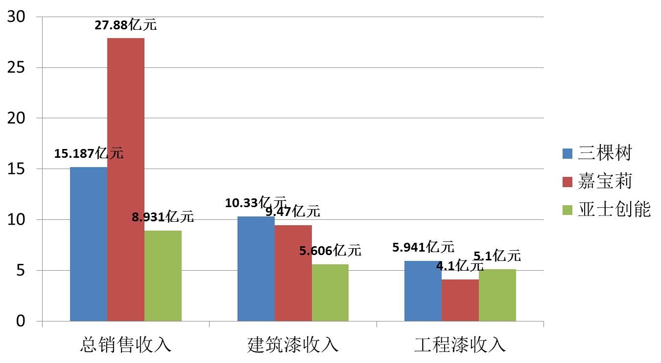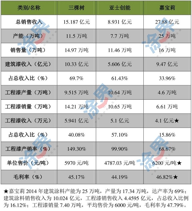 亚士创能、三棵树、嘉宝莉工程建筑涂料业务比较