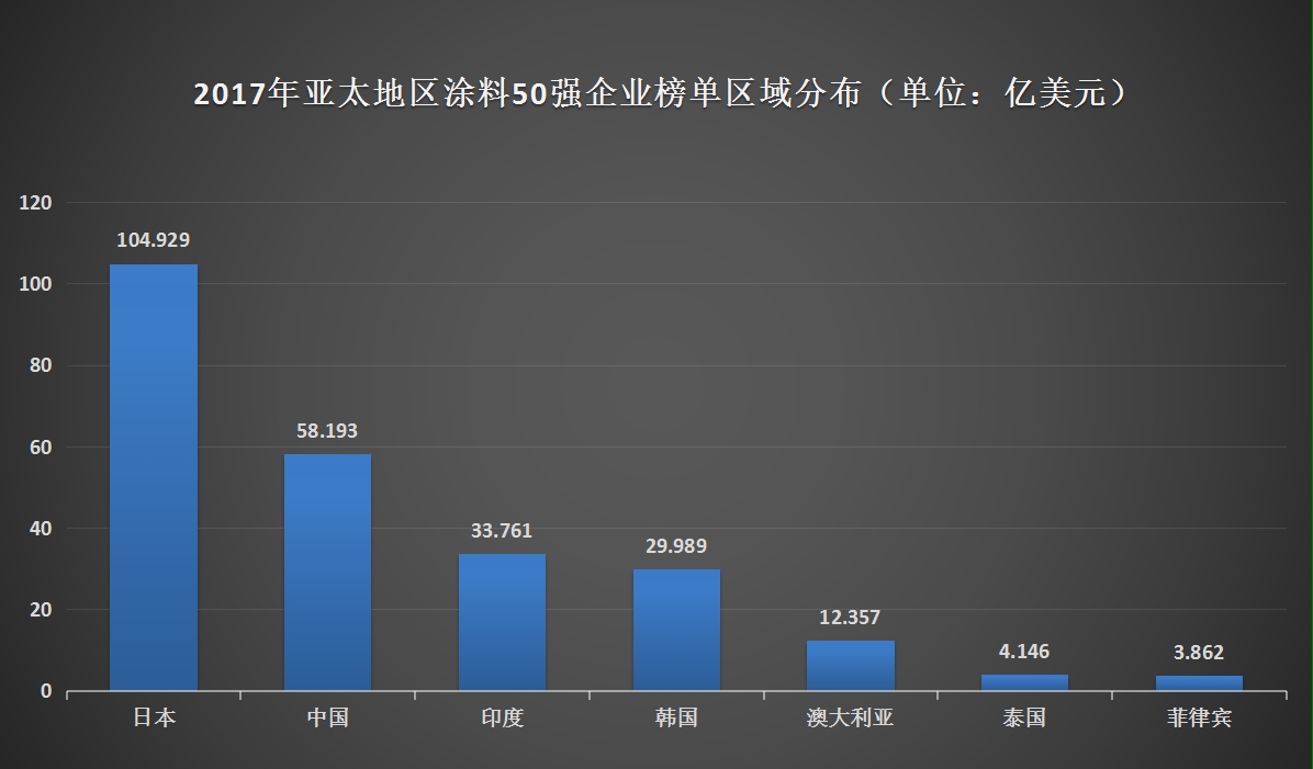 2017年亚太涂料50强企业排行榜发布,中国27家企业上榜