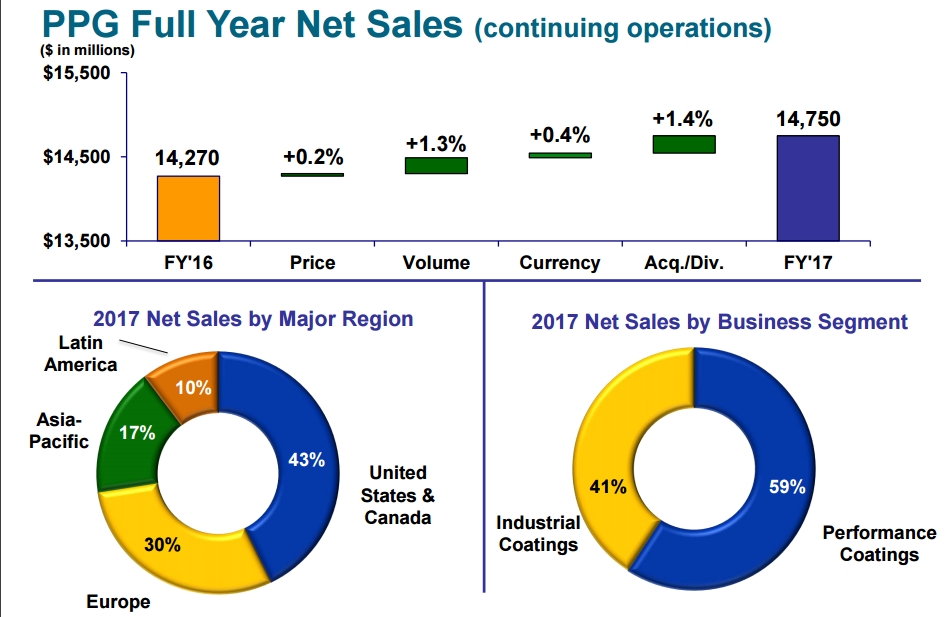 PPG、宣伟2017年度涂料业务分部情况