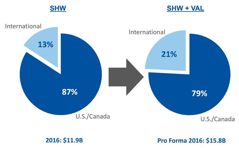 宣伟合并威士伯后2016年各地区销售额占比情况(158亿美元)