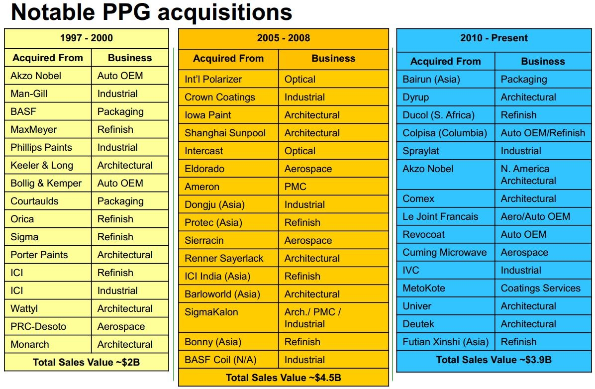 PPG自1997年以来的并购情况