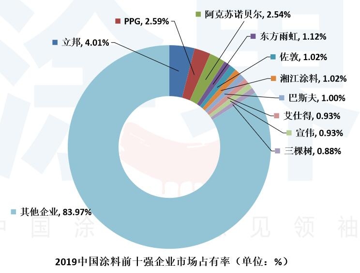 2019中国涂料企业100强排行榜揭晓,占全国份额比例仅33.56%