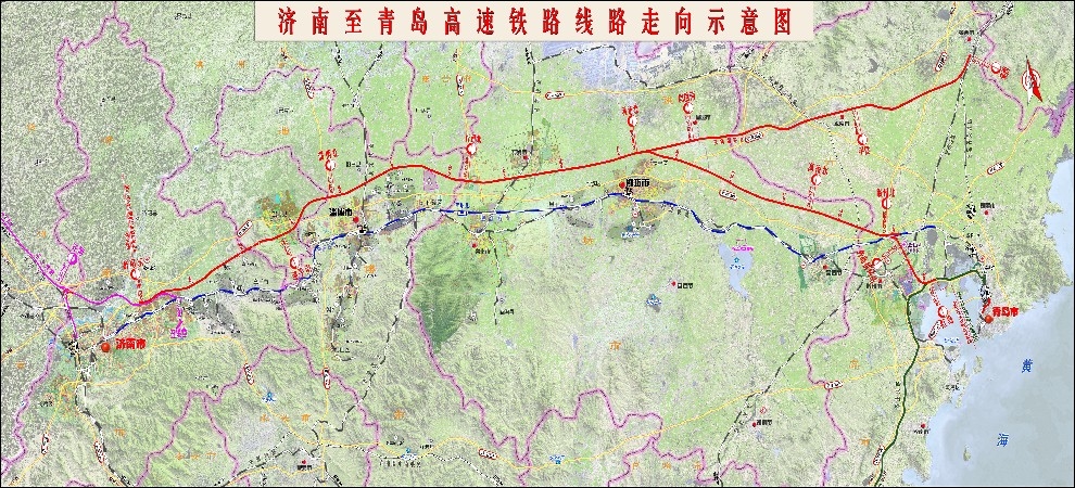 涂界记者了解到,济青高铁是山东省“三纵三横”快速铁路网的“脊梁骨”项目,也是国家“四纵四横”铁路网太青客专的重要组成部分。建成后,可与现有的胶济客专、原胶济铁路形成“客货分离的六车道”运输格局,构建贯通全省东西的黄金通道。东端,与青荣城际、青连铁路连接,辐射山东半岛沿海地区,实现济南至青岛1小时直达,与烟台、威海、日照等市2小时通达;西端,与京沪高速、石济客专连接贯通,通过拟建的济聊城际与京九客专连接,与国家高速铁路网融为一体,进而实现与华北、西北、西南、华中、华东等地区及主要城市的快速连接。