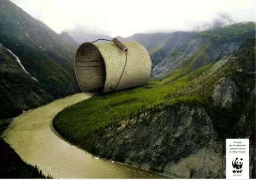以下广告来自世界野生动物基金(WorldWildlife Fund):一罐涂料就可以污染成百上千万公升的水。