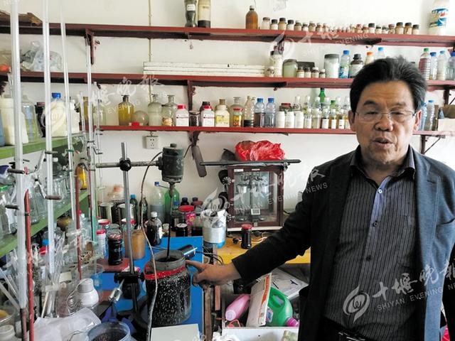 近日,记者来到黄忠斌位于茅箭区吉林路1号的实验室。他的实验室看起来非常简陋,300多种化学药品摆在简易的货架上,实在让人无法相信,获得发明专利的“废油漆渣回收再生利用的方法”竟然诞生于这个30平方米不到的平房内。