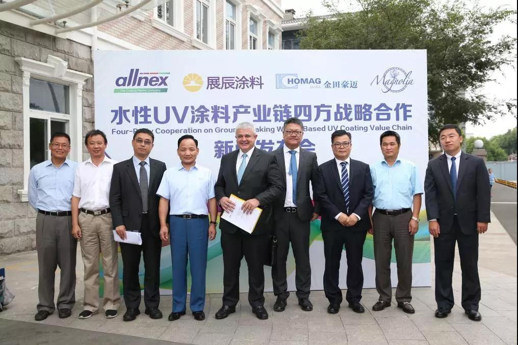9月19日,展辰新材、湛新树脂、白玉兰家具、金田豪迈共同签署了一份关于“在水性及水性UV涂料/涂装领域方面持续创新”的战略合作协议,标志着全球首条以高光镜面水性UV涂料/涂装为核心的产业链形成。
