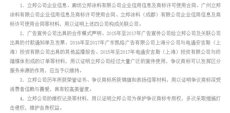 立邦公司提交的证据材料说明(截图来源:北京市高级人民法院官网)