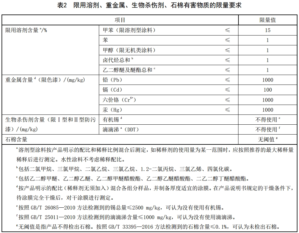 目前,我国已颁布实施的我国对涂料中有害物质限量强制性国家标准,其中包括玩具用涂料、室内装饰装修材料-溶剂型木器涂料、室内装饰装修材料-内墙涂料、建筑用外墙涂料、水性木器涂料、汽车涂料、建筑钢结构防腐涂料。如今,有新增了室内地坪涂料、船舶涂料两个领域的有害物质限量强制性国家标准。