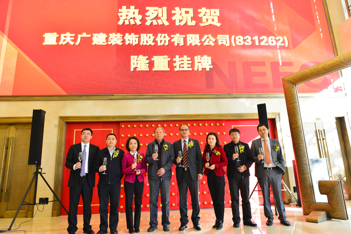 11月12日上午9点,重庆广建装饰股份有限公司(831262)专场说新三板上市挂牌仪式在京举行。据了解,广建装饰是重庆第14家新三板挂牌企业,也是首家挂牌新三板的重庆装饰企业。