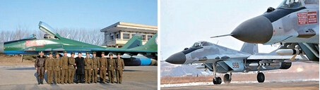此前朝鲜在最新机型米格-29战斗机上方大部分涂以较深的绿色,底部为较深的天蓝色。2012年1月末,朝鲜国防委员会第一委员长金正恩视察空军1017部队时拍摄的纪念照片米格-29也是如此显示。米格-29的特征是善于低空飞行。从上空来看,与地上颜色相似,从下面向上看,颜色则与蓝天相似,这是为了提高隐蔽性。