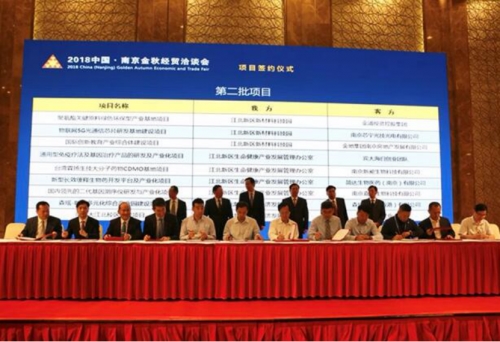 9月6日,2018中国南京金秋经贸洽谈会开幕。在洽谈会重大项目集中签约仪式现场,总投资100亿元的聚氨酯关键原料绿色环保型产业基地项目落户南京江北新区新材料科技产业园。