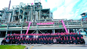 2014年10月31日,万华化学烟台工厂20万吨MDI装置,结束了32年的运转正式停车。两百多名曾在这座装置上挥洒青春与汗水的万华人自发来到装置前,向这座孕育中国聚氨酯工业发展和奠定万华发展根基的老装置致以深深的敬意和感恩。 图为停车仪式上,万华人在合影。(万华提供)