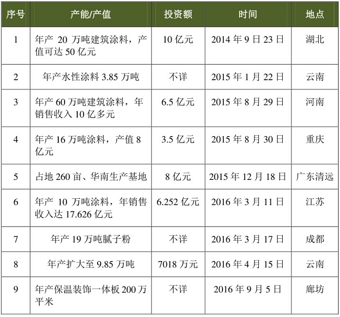根据涂界记者统计数据显示,2014年至今,立邦中国投资新增产能超过150万吨。(如下图)