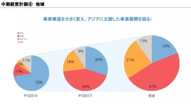 日涂控股称,到2017财年,日涂控股要求在民用涂料、工业涂料、汽车涂料三个产品领域中,分别达到中国市场的“绝对性的第一位”、“在第二集团中处于领先”及“第三位”的目标。(如下图)