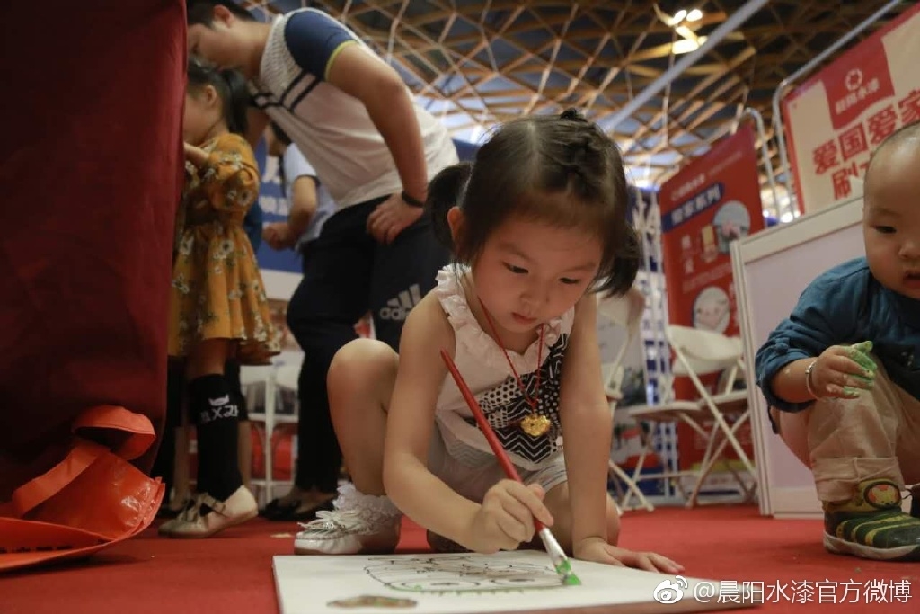 记者在位于鸟巢奥林匹克大家庭厅的水漆试刷专区看到,晨阳水漆的“稚爱”“慈爱”“纯爱”系列新品,码放出了漂亮的造型,很多人兴致盎然地在试刷水漆,有些人还带来了孩子一起试刷。