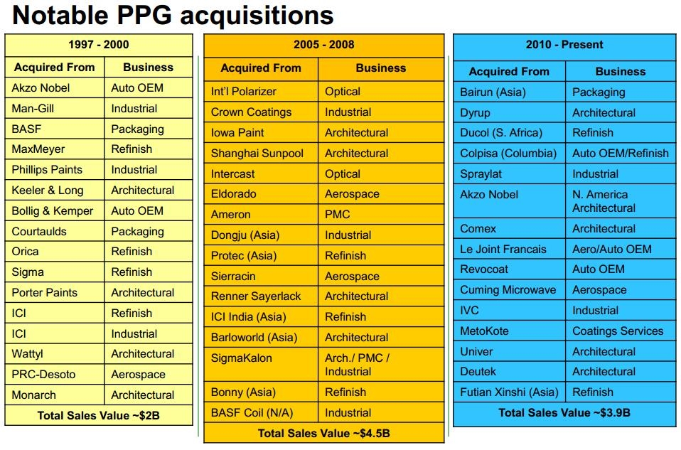 今年以来,全球涂料市场发生了多起巨头间的整合并购,比如PPG欲收购阿克苏诺贝尔,阿克苏诺贝尔欲与艾仕得进行对等合并,立邦谋划收购艾仕得;此外,宣伟完成收购了威士伯,成为全球最大涂料生产商。