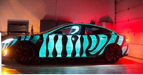 LumiLor由Darkside Scientific团队开发,可以喷涂到金属、热塑料、玻璃、碳纤维等多种材料表面,并且除了平面之外,还可以喷涂到曲面和各种大小和形状的表面上,弯曲180度也不会掉漆,并且用手触摸也不会让人触电,因此应用范围很广,目前已经应用到汽车改装、自行车夜间安全照明、头盔等多个领域。