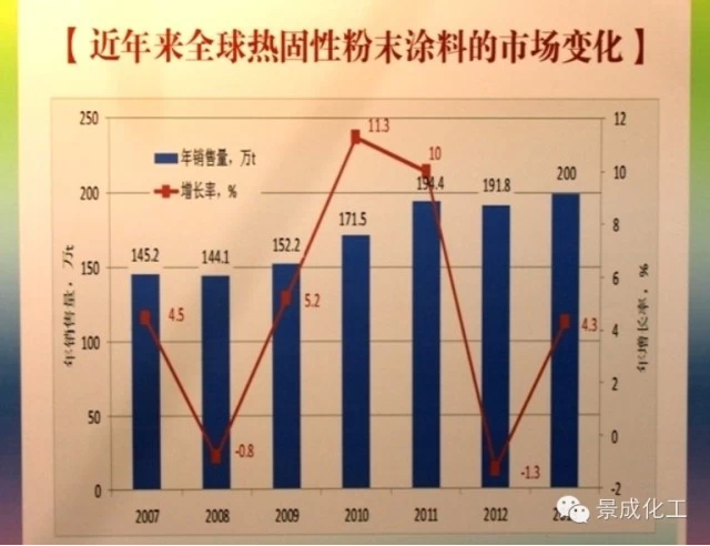 表1:2007-2013年全球热固性粉末涂料年销售量