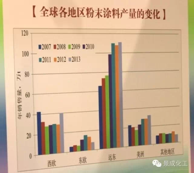 表2:2007-2013年全球各地区热固性粉末涂料产量变化