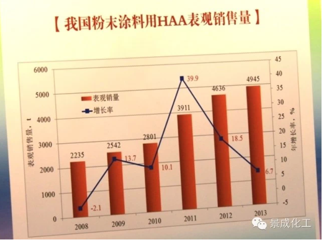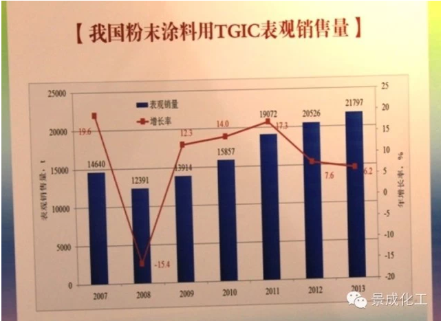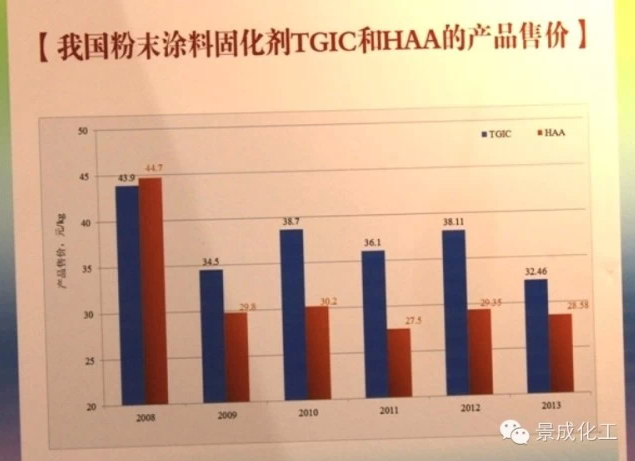 六、近年来我国粉末涂料用固化剂TGIC/HAA数据如下: