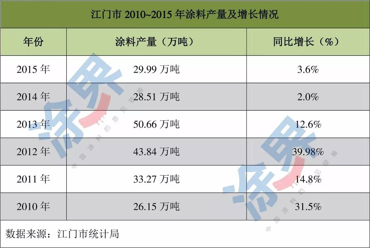 根据《江门日报》报道,江门涂料还有2015年企业达到300多家,行业年产值超过150亿元;排在江门前10位的涂料企业,其产值占了整个江门涂料总产值的50%以上。