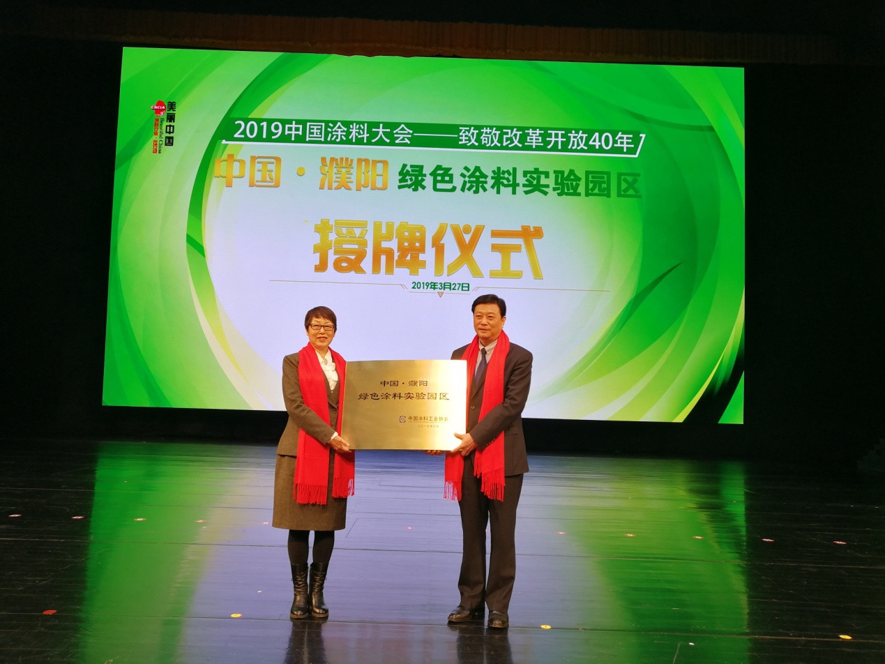 在2019中国涂料大会开幕式上,中国涂料工业协会授予濮阳工业园区“中国·濮阳绿色涂料实验园区”,授予濮阳职业技术学院“中国涂料工业大学濮阳学院”,授予濮阳工业园区、濮阳职业技术学院“涂料行业人才培养基地”,授予部分会员单位“中国涂料行业绿色工厂”。(涂界)