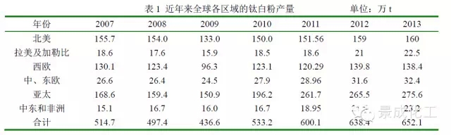 自1995 年以来国外钛白粉的产能产量每年只有微量增长,这主要是由于国外的市场已发展到相对成熟阶段,加上严厉的环保政策极大的遏制了资本的进入,所以产量的增长基本上靠技术改造、去瓶颈来实现,新建项目几乎没有。