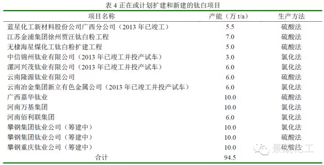 在国家发改委制定的“限制硫酸法钛白工艺发展,鼓励建设3万t/a以上规模氯化法钛白粉装置,新建装置原料必须使用TiO2含量≥90%的天然或人造金红石、高钛渣”的产业方针引导下,近几年一批大型氯化法钛白粉项目陆续建设,更多的氯化法钛白粉项目正在规划论证中。现今各地正在建设、实施中的氯化法项目共5个(云南新立、锦州钛业、河南漯河、洛阳万基和佰利联),其中云南新立、锦州以及河南漯河的项目已建成并进行了多次试投产,但都不顺利,今后运行效果还很难预料。另外,攀钢集团、株州化工集团、连云港盐化集团及四川龙蟒钛业公司等都宣布了其建设氯化法钛白项目计划。