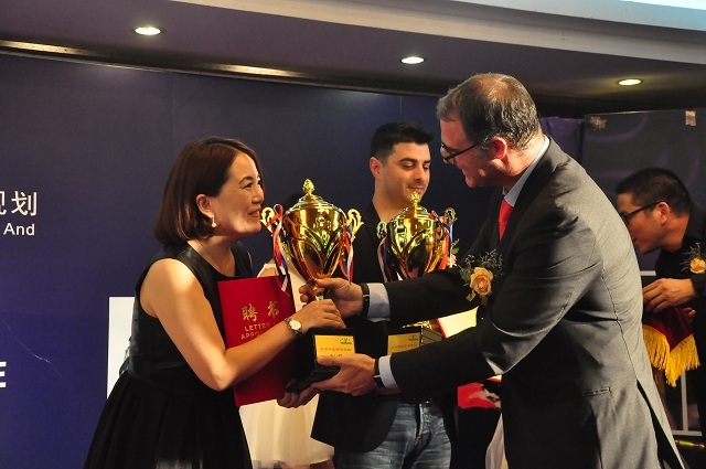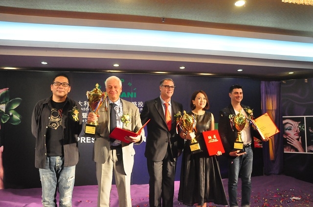 会议期间,意大利TASSANI还举行了中国分公司授聘仪式,其中聘任刘芳女士、MR.Saia Stefono、MR.Vincezo Vince分别为TASSANI中国分公司执行总裁、首席技术官、艺术顾问,意大利TASSANI全球执行总裁MR.Luigi Viginolo、意大利TASSANI中国分公司CEO项兴浩先生为受聘人颁发了聘书及荣誉杯。