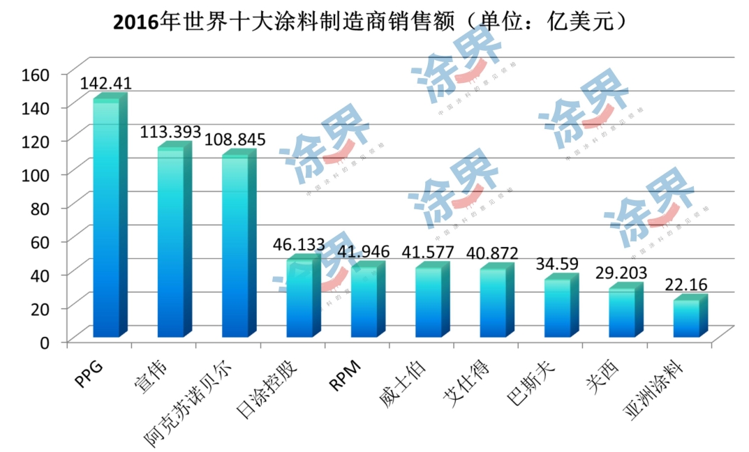 世界十大涂料制造商榜单发布 占世界份额达32.52%