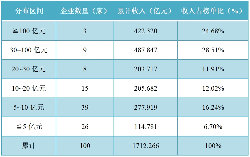 ◎销售收入超过100亿元为3家,30-100亿元之间为9家,20-30亿元之间为8家,10-20亿元之间有15家,5-10亿元之间有39家,5亿元以下为26家。