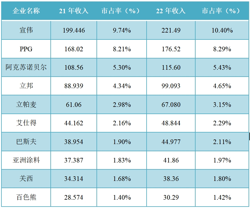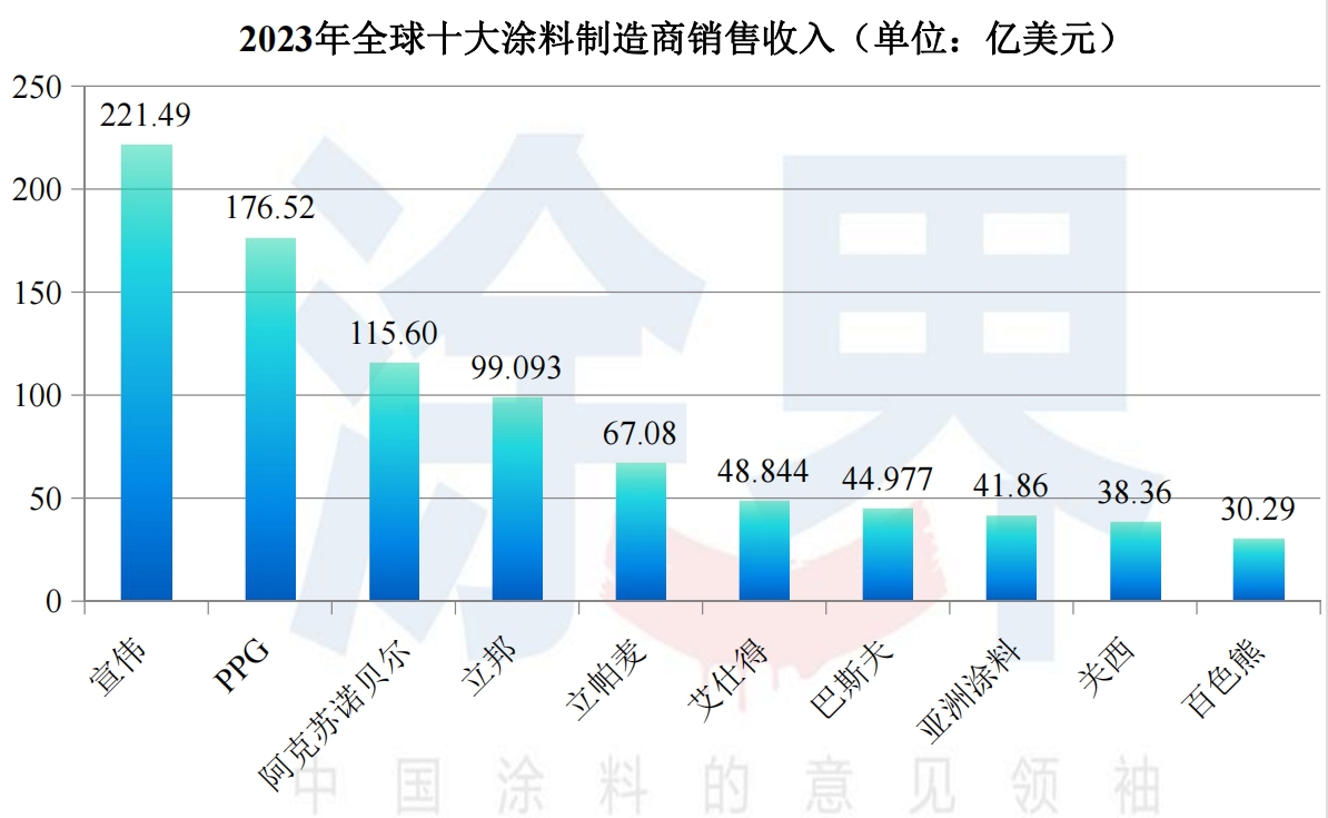 2023全球十大涂料制造商榜单揭晓,全球市占率提升至42%