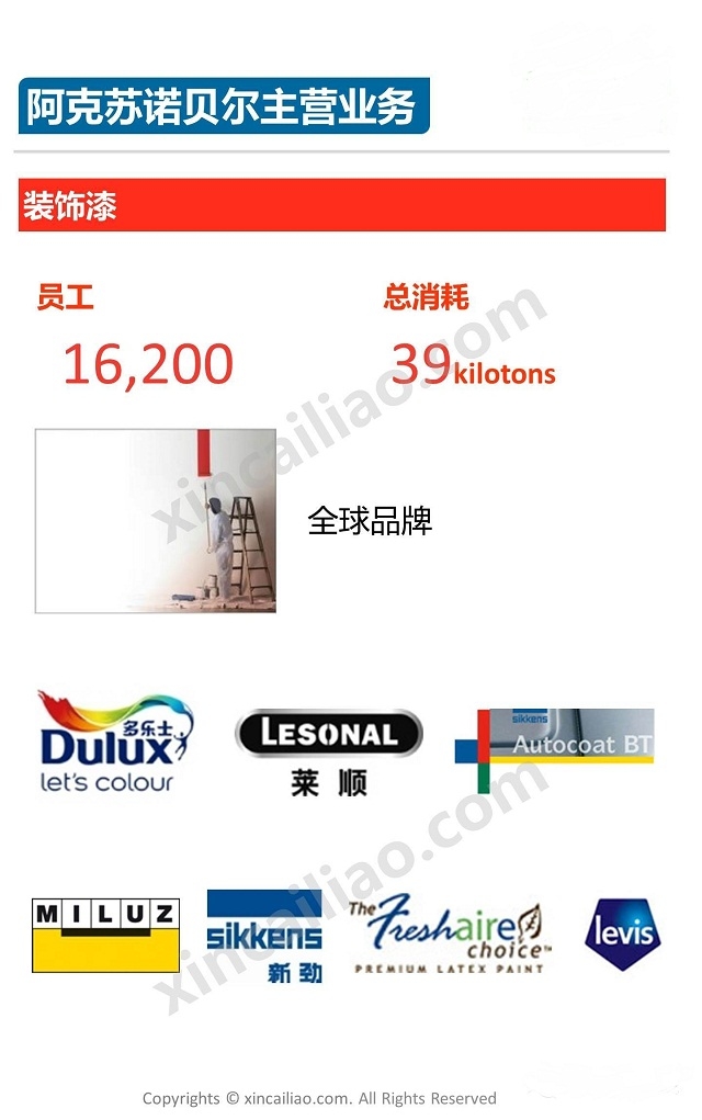 摘要:阿克苏诺贝尔公司(Akzo Nobel N.V),是跨国化工和医药集团,总部设在荷兰,是一家具有多元文化的国际性公司。以市场为动力,技术为基础,向全世界广大用户提供涂料、医药保健产品和化学品。