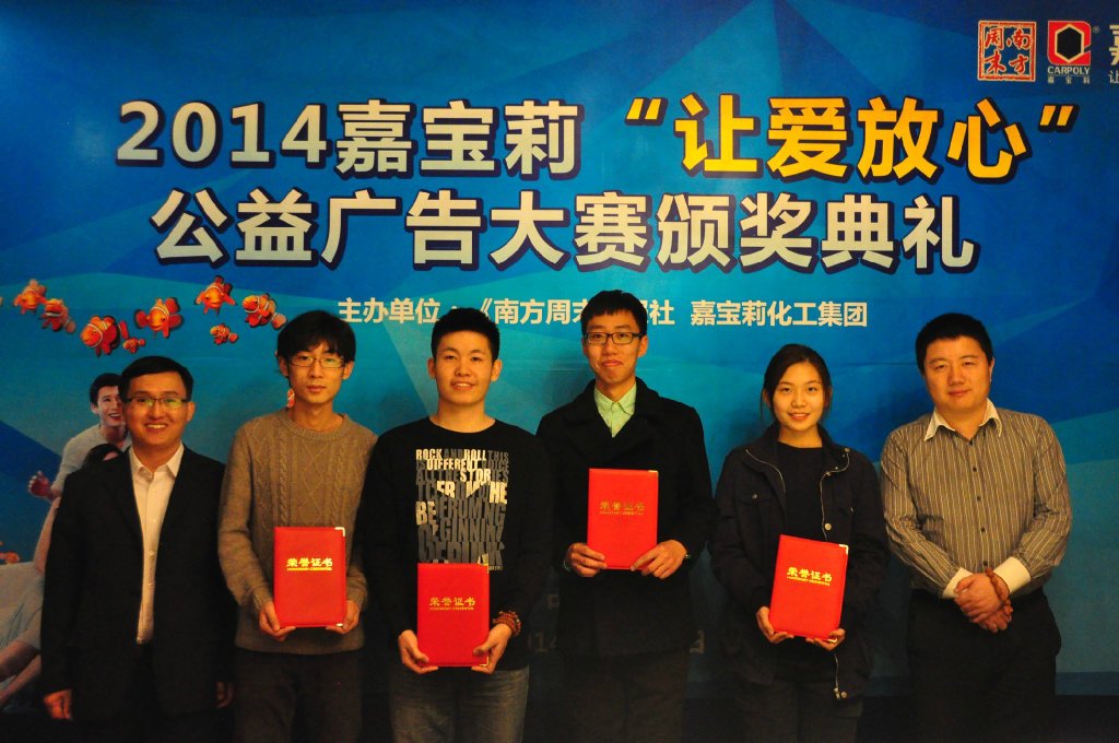 活动结束时,组委会共收到22部参赛作品。经过南方周末和嘉宝莉共同组成的专业评委的严格评审,8部作品最终摘得大奖。除北影曾耀等同学的作品《微爱十年,让爱放心》获得“最佳公益广告”奖外,四川大学余越洋等同学的《下山的路》等三部作品获得二等奖,湖南师范大学侯倓影等同学的《她只是想和你说说话》等四部作品获得三等奖。