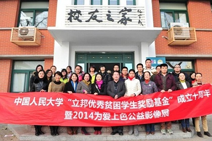 12月10日,“立邦人民大学优秀学生奖励基金”成立十周年暨2014为爱上色公益影像展在中国人民大学举行。