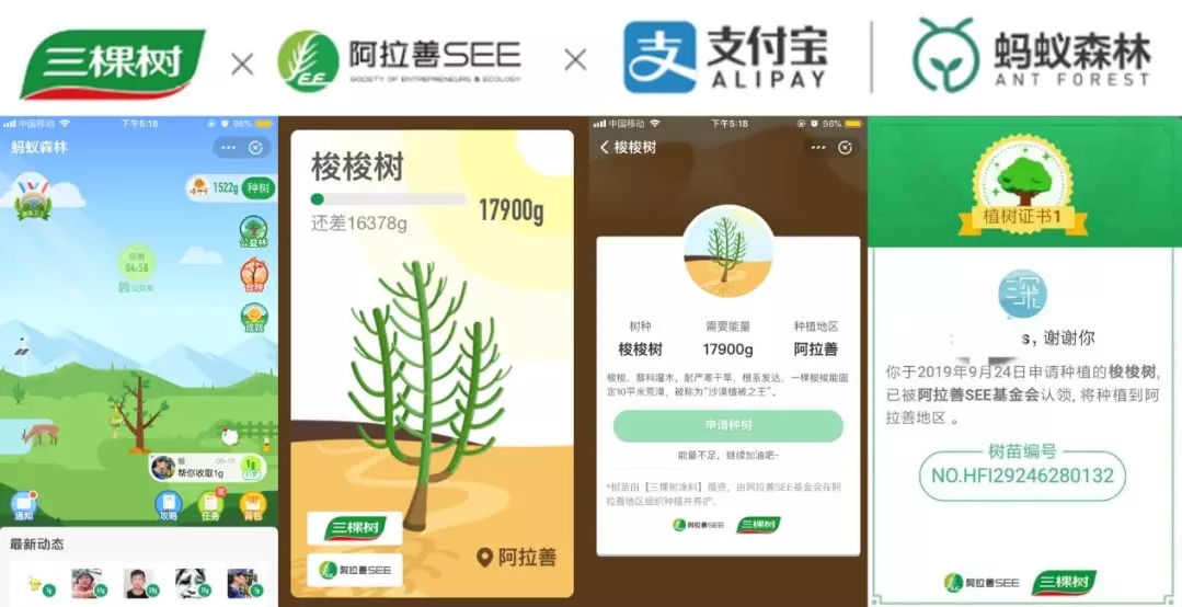 三棵树携手支付宝蚂蚁森林,探索互联网+公益新模式