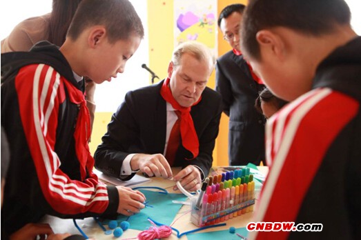阿克苏诺贝尔公司负责装饰漆业务的管理委员会成员尤禄德(Ruud Joosten)在四川成都,与邛崃高河镇九年义务教育学校的同学们一起参加了一堂生动的“梦想课程”,用色彩绘制了精美的手工制作。“梦想中心”项目是一项面向广大城乡中小学生的公益项目,旨在提升中国的素质教育水平。