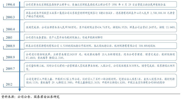 2005年,公司进行业务重组,资产人员开始与航材院独立,形成中航新材雏形。2009年7月1日,公司在新三板挂牌。