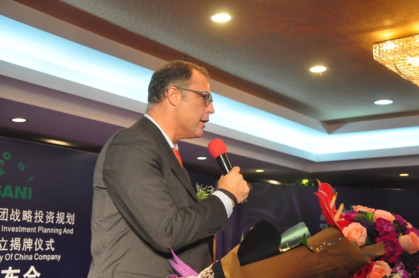图为意大利TASSANI全球执行总裁Mr.Luigi Vignolo会上致辞