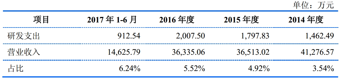 在产品技术研发方面,亚士创能“不惜血本”,其研发投入占销售收入的比重皆超过4%。为满足节能环保涂料及保温材料产品的市场需求、巩固并提升公司竞争力,亚士创能持续加强在节能环保产品研发、先进设备购置、高端人才引进等方面大力投入。2017年上半年,亚士创能的研发支出占营业收入的6.24%,亚士漆的研发支出占营业收入的比重为3.46%。