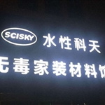 聘请姚明为环保形象大使,冠名多个国内娱乐节目后,水性科天的品牌形象在家具行业内逐渐被认知。记者在兰州新区水性科天产业园附近的道路两侧看到,水性科天的“无毒”宣传标识成为一道风景,在该产业园外,“无毒家装材料”的广告牌也清晰可见。