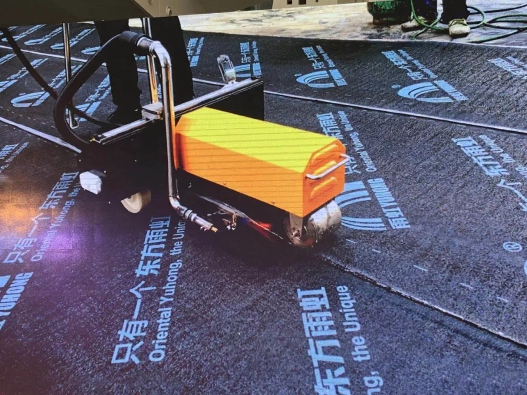 这款机器看上去有点“呆萌”,却是防水施工工人的最佳帮手。负责“虹人”系列产品研发的东方雨虹总工程师、智能装备公司首席架构师王新介绍说:“当前行业内,热熔改性沥青卷材的施工还是人工、半人工操作为主要手段。人工操作充满不确定性,尤其搭接带烘烤焊接存在漏焊、虚焊、密封不严的情况,热熔改性沥青防水卷材本是最符合工程防水原理的产品,却因为施工原因不能满足其使用功能。也正因如此,热熔型改性沥青卷材防水系统在国内一直饱受‘不可靠’诟病,施工成本高,渗漏水依然高发,极大地浪费了社会资源。”