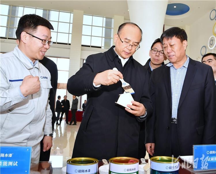3月21日-22日,河北省省长许勤到保定蠡县、博野、安国调研。这是许勤在博野考察晨阳水漆公司,实地了解产业发展情况。