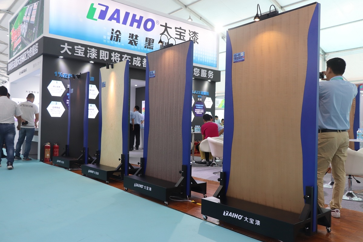 展会上展示的“1度左右的PU面漆全哑涂装系列”是大宝漆核心技术的双重突破,大宝漆开发独家自消光树脂,通过在树脂合成阶段介入刚性消光物质,可使产品达到1%的光泽度。涂装后漆膜同时具备超低光泽及透明度极佳,并拥有优良抗刮性的完美效果。适用于开放式涂装或全封闭式涂装。