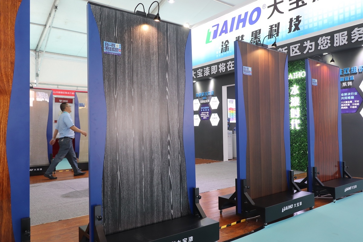 “在新材料部分,主要是针对科技木皮,这次的产品还很好的解决了科技木皮褪色和通透性的问题。”大宝化工总经理张正贤介绍说,这些产品经过两年的测试升级,前期直接和材料厂家合作研发,从材料商的实际反馈来解决过去很多包括褪色、变色、透明性等难题,追求极致,才把这个近乎完美的产品隆重推出市面。