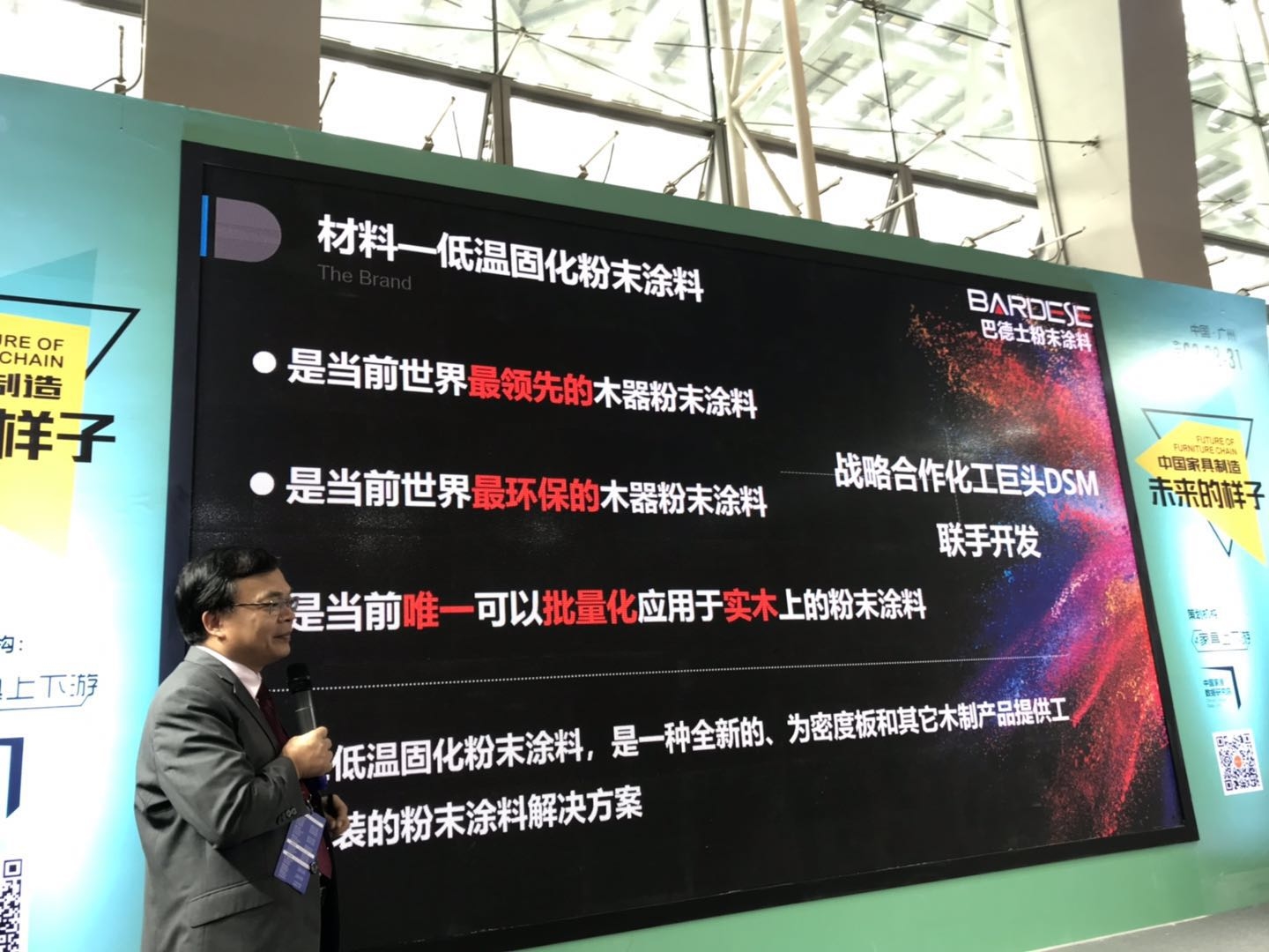 客观来讲,中国的涂料产业经过30多年的高速发展,当前的涂料市场已经是强手林立,若想获得突破,必须需要有过硬的技术做背书,巴德士显然是有备而来,其代表性产品木器粉末涂料,就是最新研发的高性能环保产品。
