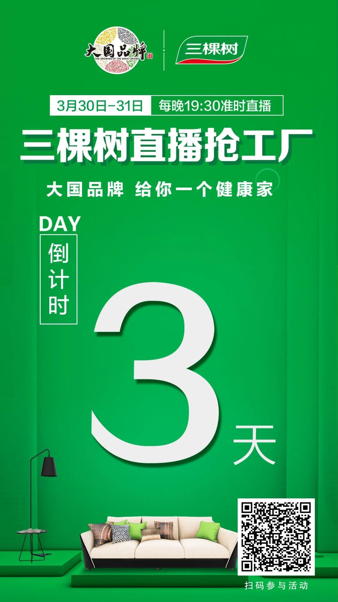 秉持“让家更健康、让城市更美丽”企业愿景,三棵树在满足消费者需求、帮助消费者提高品位,打造家居空间层次感的基础上,以其独特的研发,精湛的工艺,以及出色的品质,推出的绿色健康涂料产品深受消费者青睐。此次“直播抢工厂”活动中,三棵树给出的产品也十分具有诱惑力,三棵树BB漆、净味360抗菌墙面漆等多款线下门店热卖的明星产品、爆款产品限时限量秒杀,为消费者送福利。