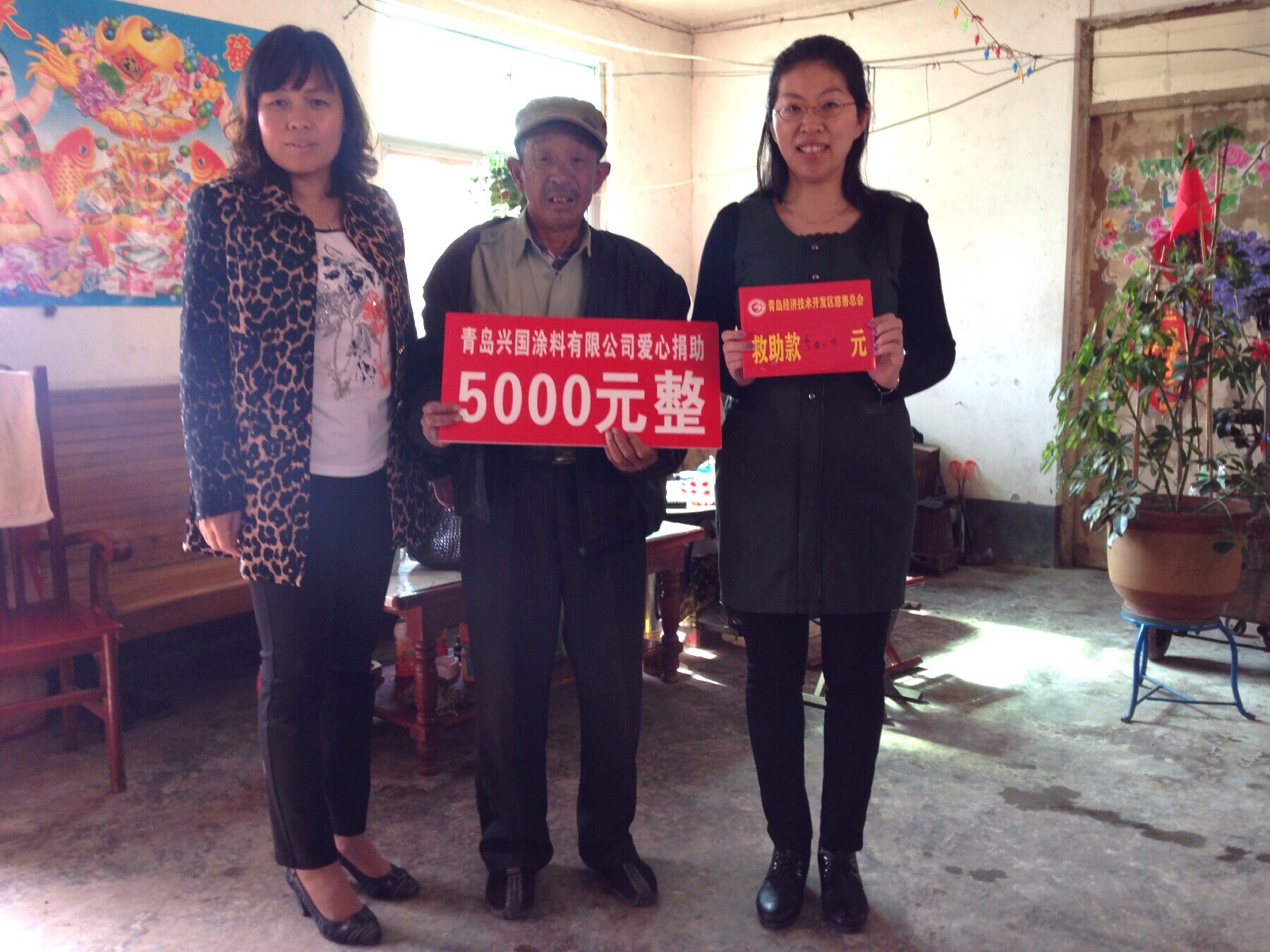 10月22日,青岛兴国涂料有限公司副总经理刘沛颐及灵山卫民政办主任马会玲、白果树村主任李世友等领导一同来到灵山卫街道办事处毛家山村民李世欣家中慰问,并为他们带来了5000元爱心捐助款作为其女儿的助学金。